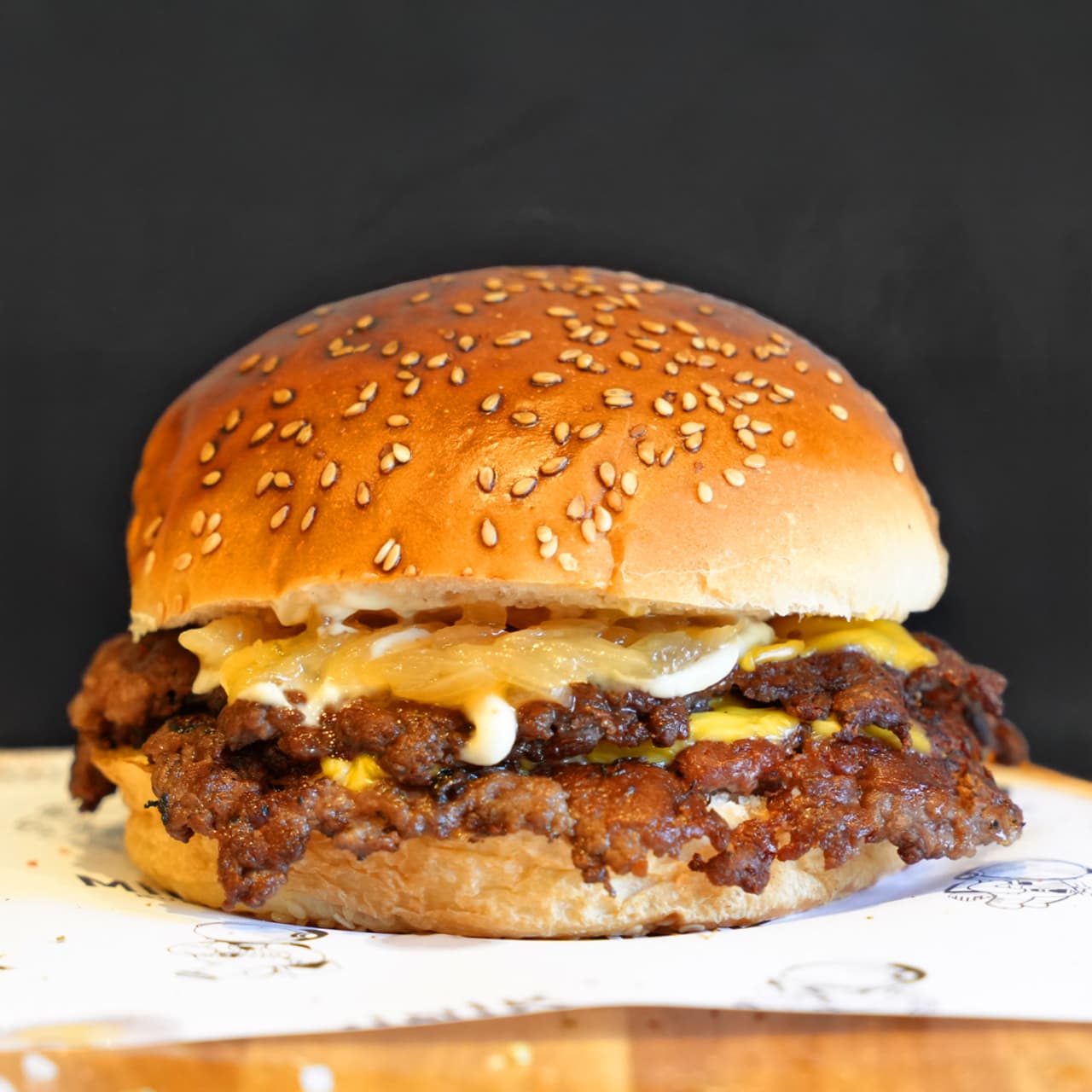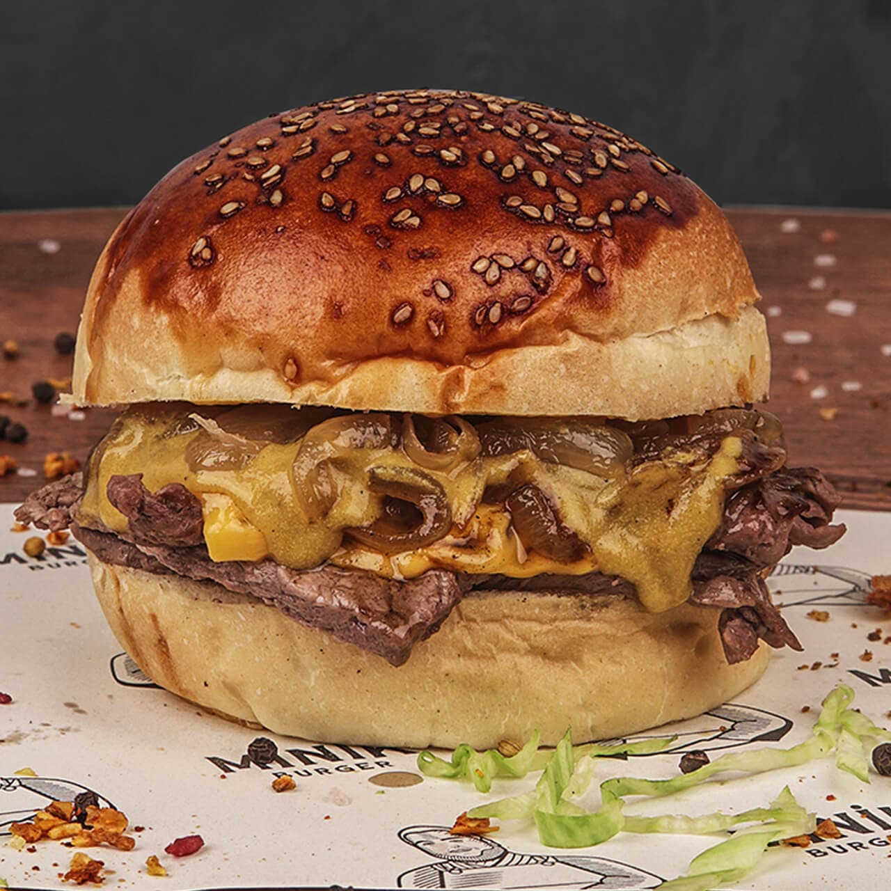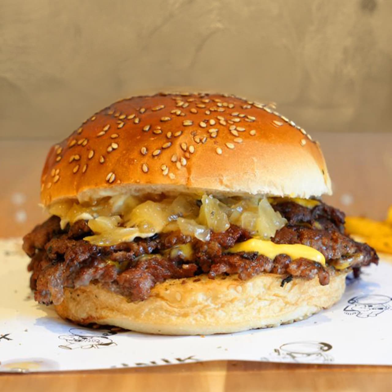 2 adet Smash Köftesi - Karamelize soğan - Cheddar Peyniri - Trüflü Mayonez. Patates kızartması ile