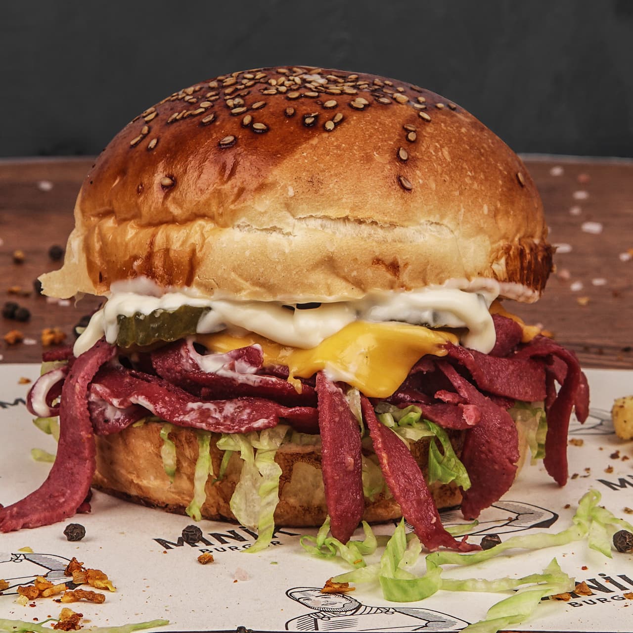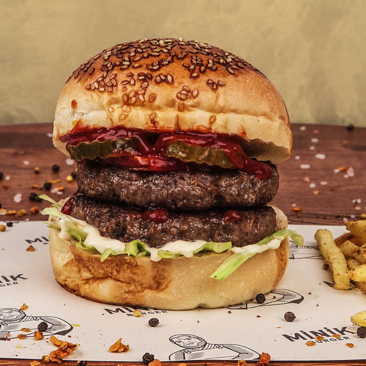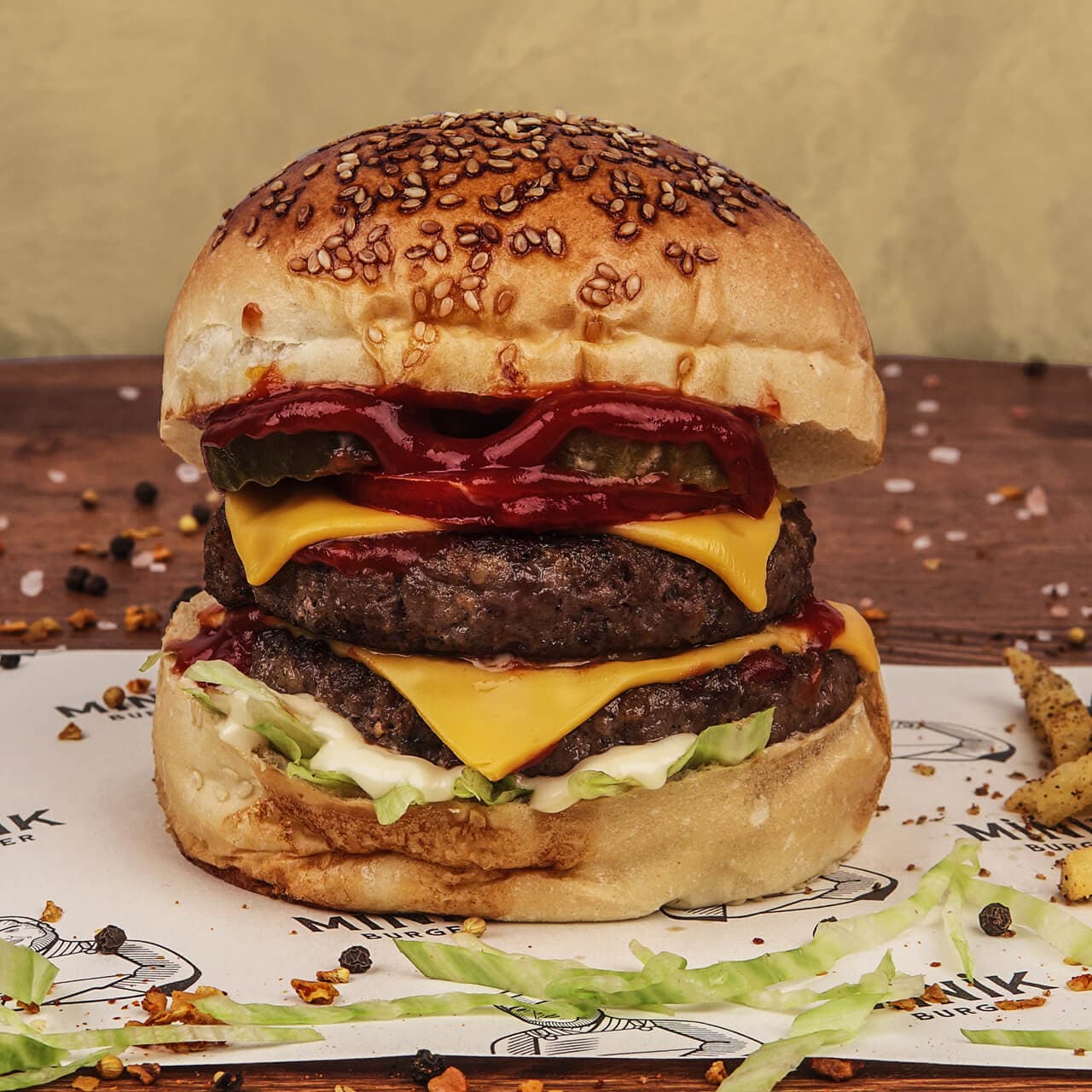 2 adet Smash Köftesi - Karamelize soğan - Cheddar Peyniri - Trüflü Mayonez. Patates kızartması ile